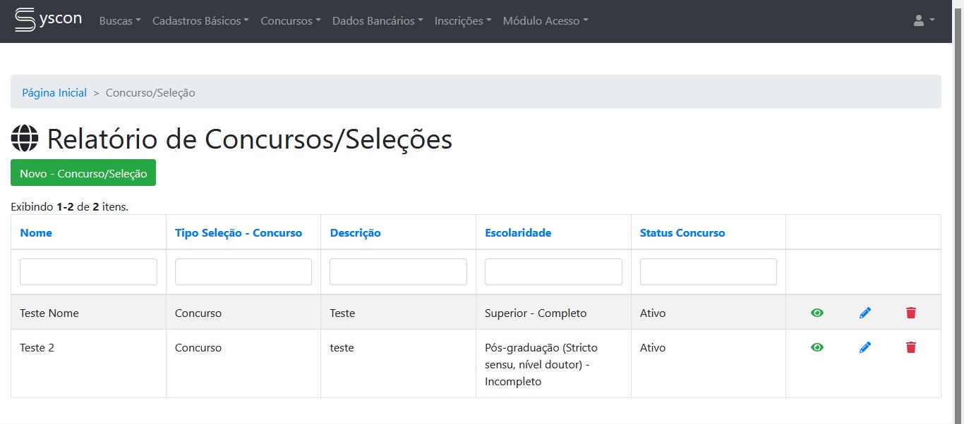 Sistema elaborado com a finalidade de monitoramento, inscrição e acompanhamento de concursos.